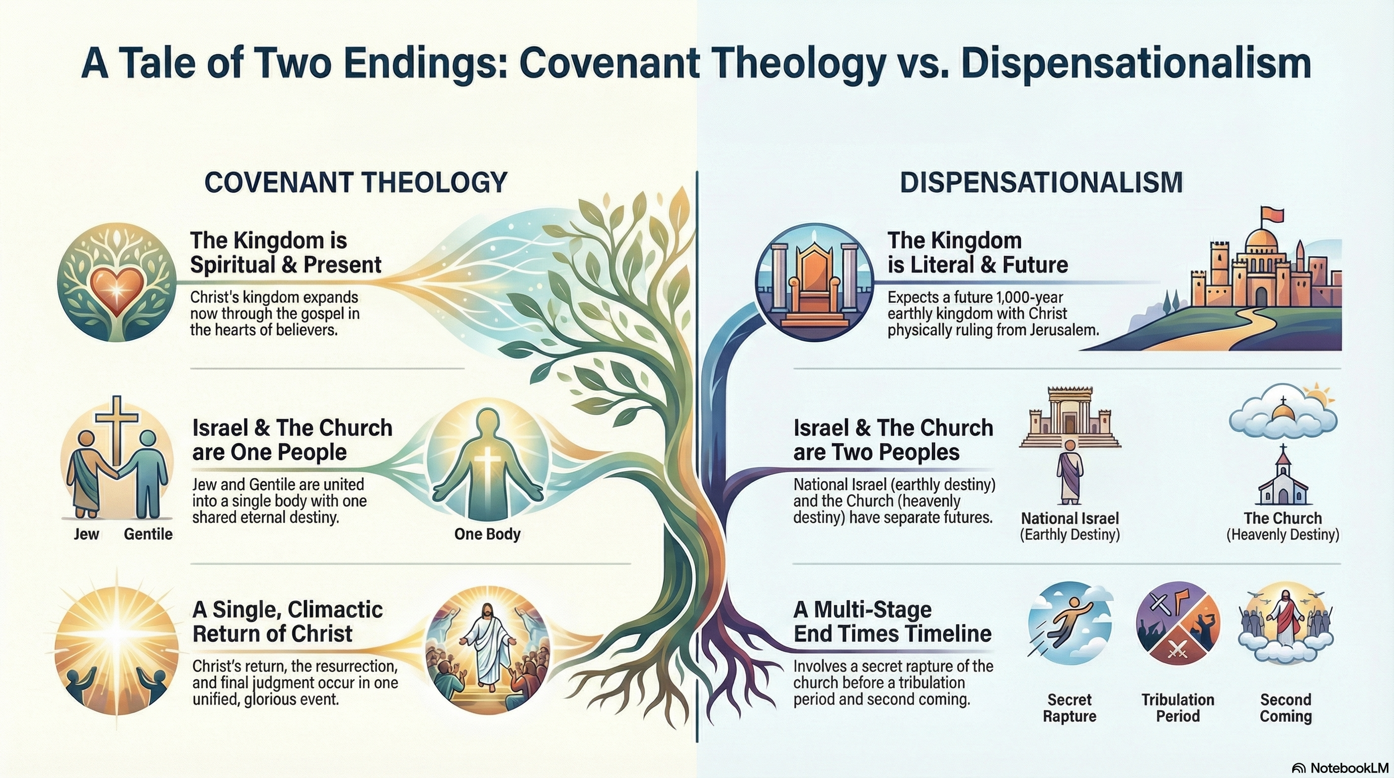 In our previous exploration, we looked at the hermeneutical and theological shifts from Dispensationalism to Covenant Theology (CT). Now, let's focus specifically on how Covenant Theology envisions the end times, offering clarity on its distinct interpretation of Scripture—and why it does so.