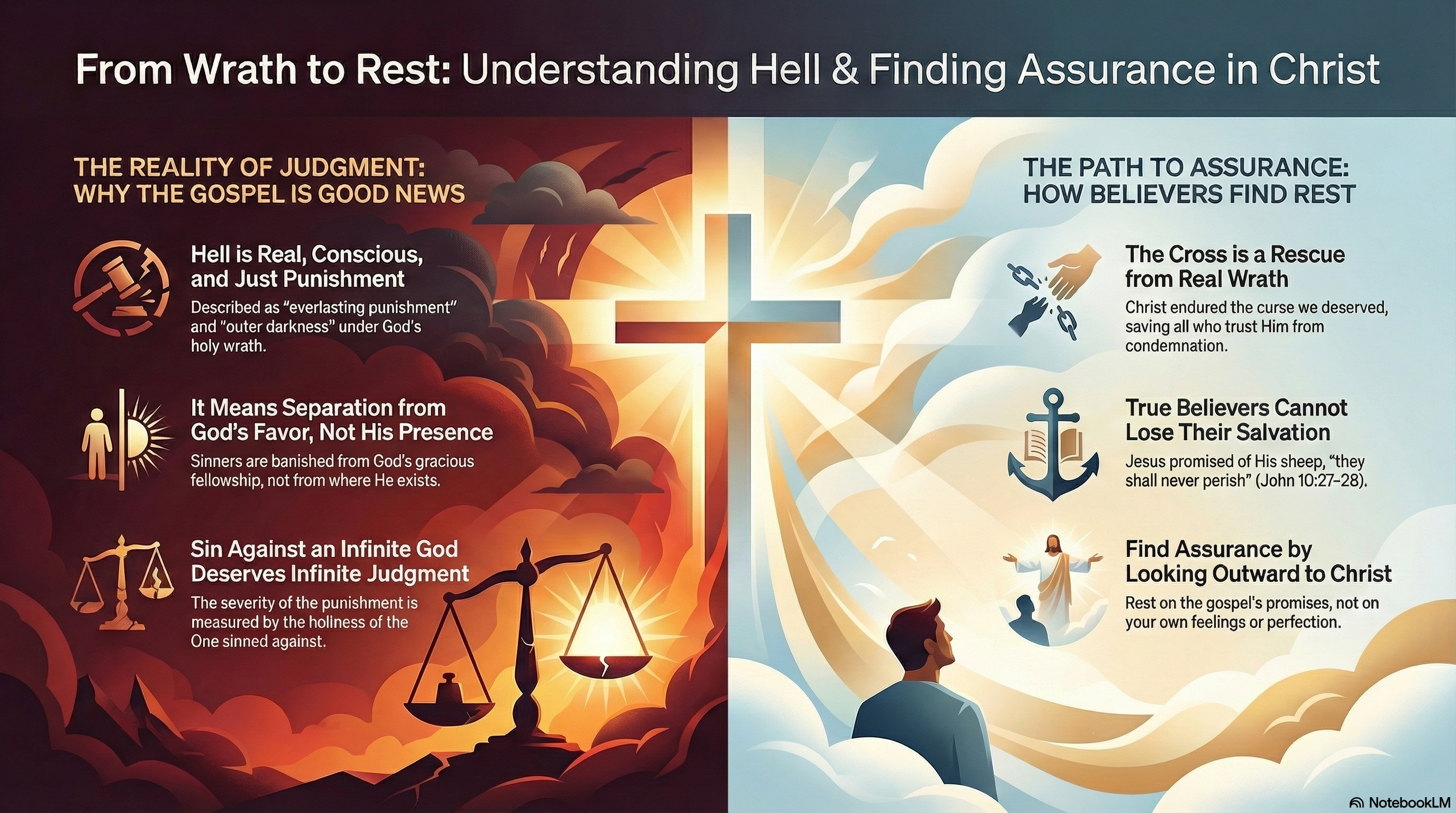 Scripture speaks about hell so we will **fear God**, **flee to Christ**, and **rest in His promises**—not so we become morbid, speculative, or despairing. “**Knowing therefore the terror of the Lord, we persuade men**” (2 Corinthians 5:11), and we also comfort believers: “**There is therefore now no condemnation to them which are in Christ Jesus**” (Romans 8:1).